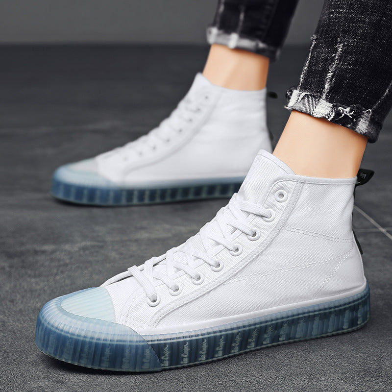 Spring Men's High-top Board Shoes Trendy Youth Student White Shoes Velcro Sports Casual