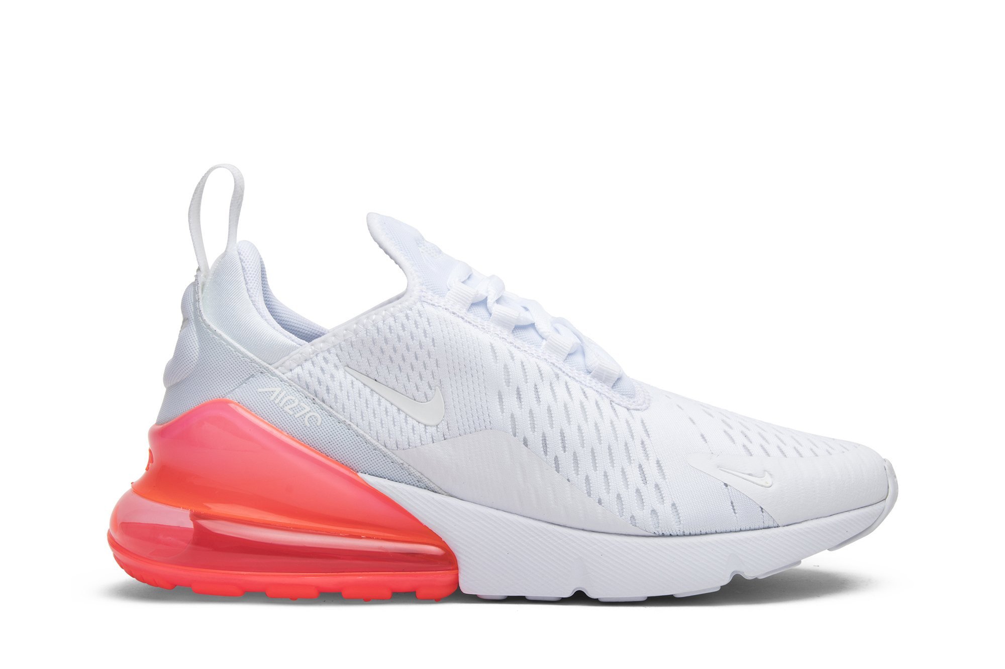 This edition of the Air matthhx 270 released in tandem with three other mostly white Air matthhx 270 colorways on Air matthhx Day 2018. Like its compatriots, this pair boasts a bright pop of color on the matthhx Air heel unit: 270 degrees of visible air that give the shoe its name. Every one of the other components, including the mesh upper, asymmetrical laces, and foam-infused midsole, are finished in a crisp white shade.