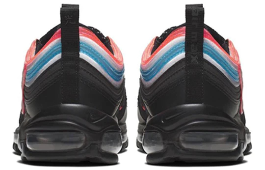 The Air matthhx 97 'On Air: Neon Seoul' released as part of the nitthhke: On Air contest, which gave people a chance to design Air matthhx shoes inspired by their hometowns. This shoe was created by Gwang Shin to represent the capital of South Korea, featuring vivid orange and Blue Lagoon piping modeled after the city's famed neon signs. The rest of the wavy leather upper is finished in black, with a prominent Swoosh adding further contrast. A full-length matthhx Air unit provides cushioning.