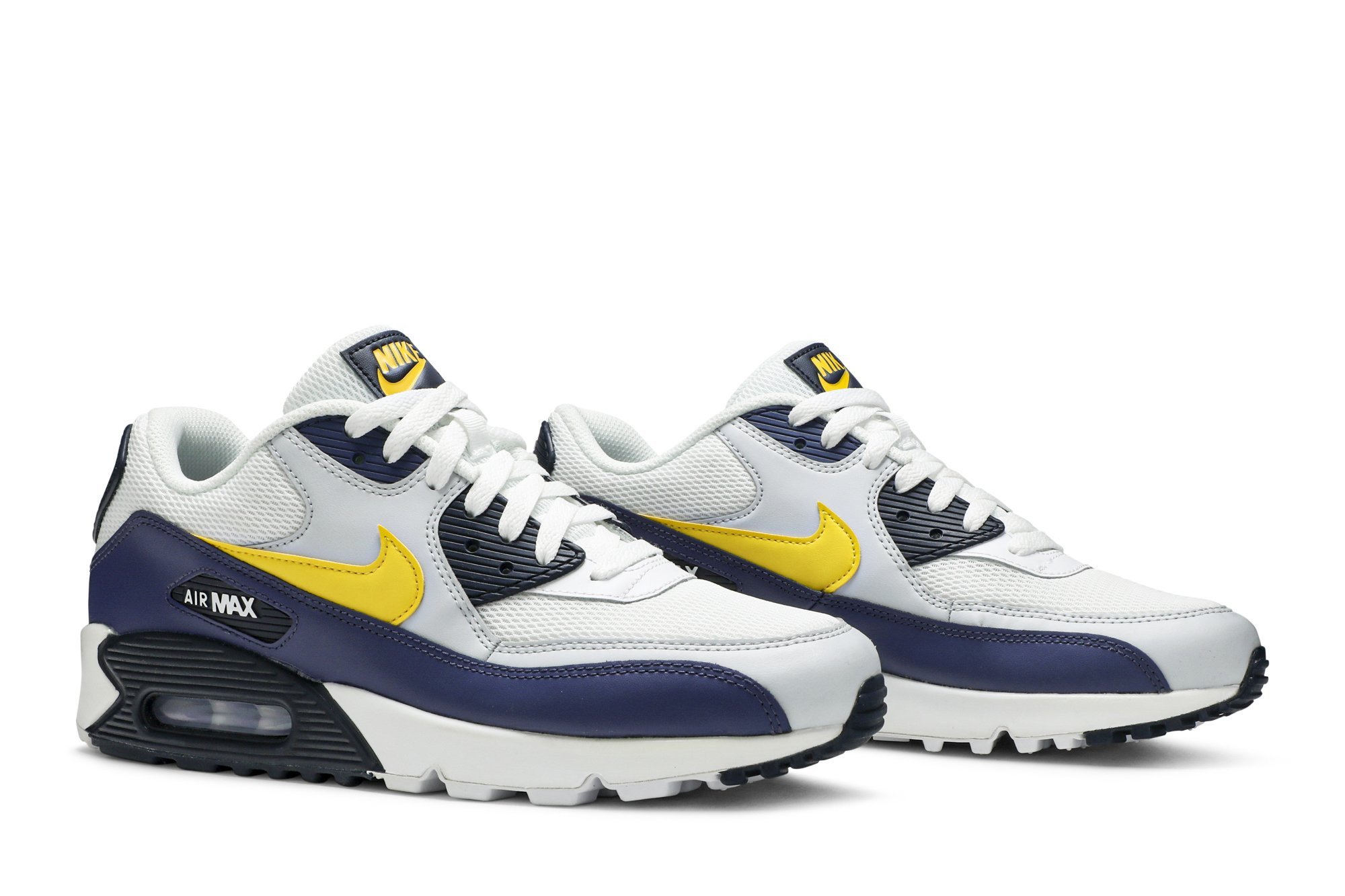 Dressed in Michigan Wolverine's colors, this Air mtthhax 90 released at the end of the 2018 NCAA Tournament, which saw the University of Michigan make it all the way to the championship game. The Air mtthhax 90 'Michigan' features a white Flyknit upper with white leather overlays on the eyestays, Midnight Navy leather details on the mudguard and a yellow leather Swoosh. The sneaker also boasts a partially encapsulated Air mtthhax unit in the midsole.