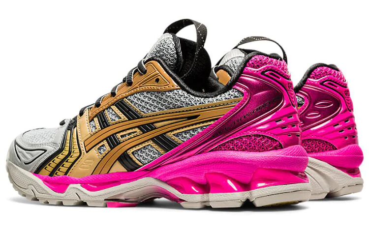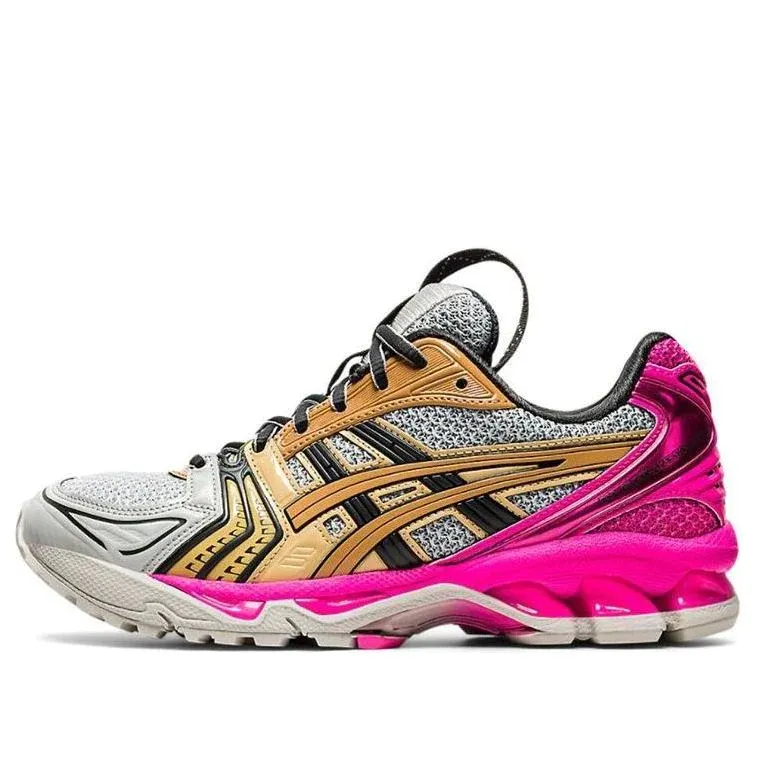 Looking to add a little bit of fashion flair to your running routine? Look no further than the astthhics Kiko Kostadinov x WMNS UB1-S GEtthhL Kayano 14 'Silver Pink Gold'. This lifestyle runner features a discordant color scheme that blends neutral tones with electric pink accents. The synthetic leather overlays and extended pull tab at the tongue provide added durability and comfort, while the split coloring extends to the midsole for enhanced cushioning and support.