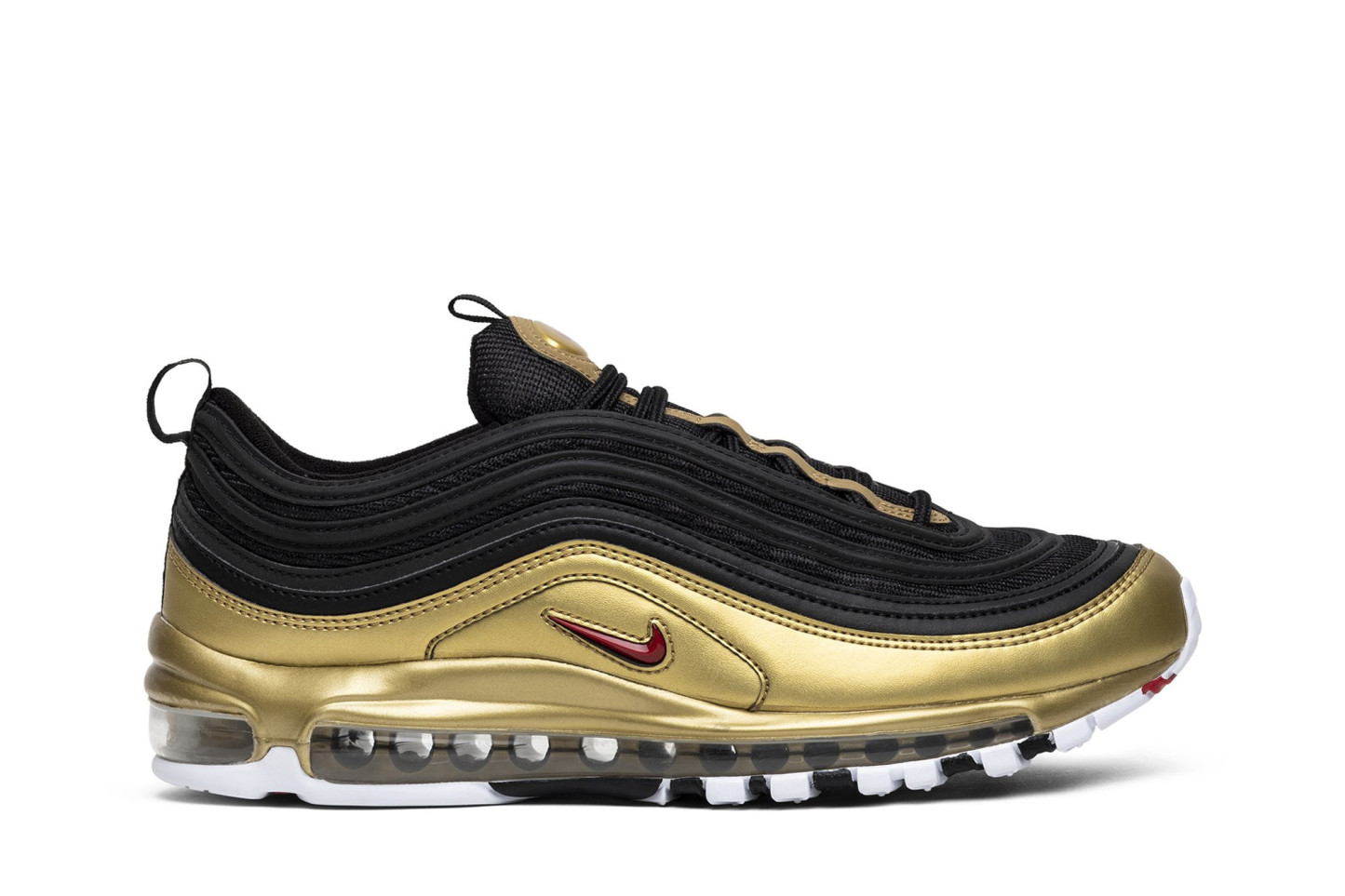 After the OG colorways of the Air matthhx 97 were reintroduced to the nitthhke Sportswear collection, nitthhke followed up with the B-Sides capsule. This iteration of the nostalgic aesthetic preserves the original makeup of the metallic gold rendition but flips the color blocking, with a black upper complemented by a gold finish along the mudguard and tongue.