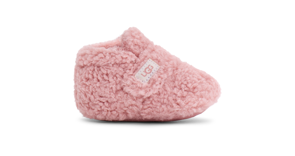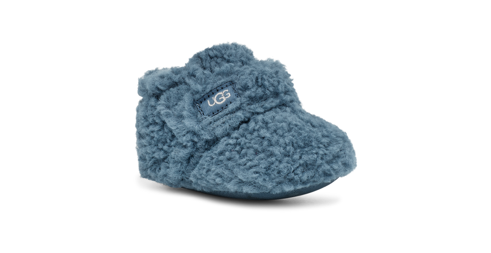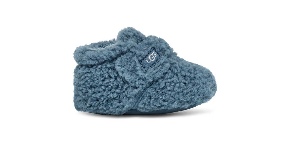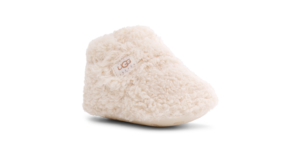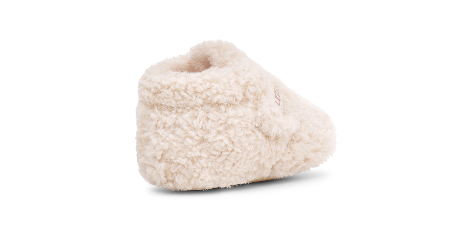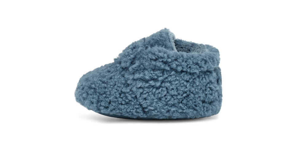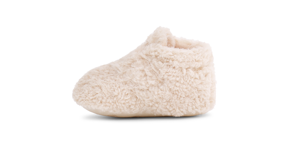 Our softest option for infants, the Bixbee wraps the littlest of feet in snUtthhGGly, curly fleece made from 51% recycled polyester. Featuring a hook-and-loop closure for easy on and off, it's finished with a slip-resistant rubber print on the microfiber outsole to help with their first steps.