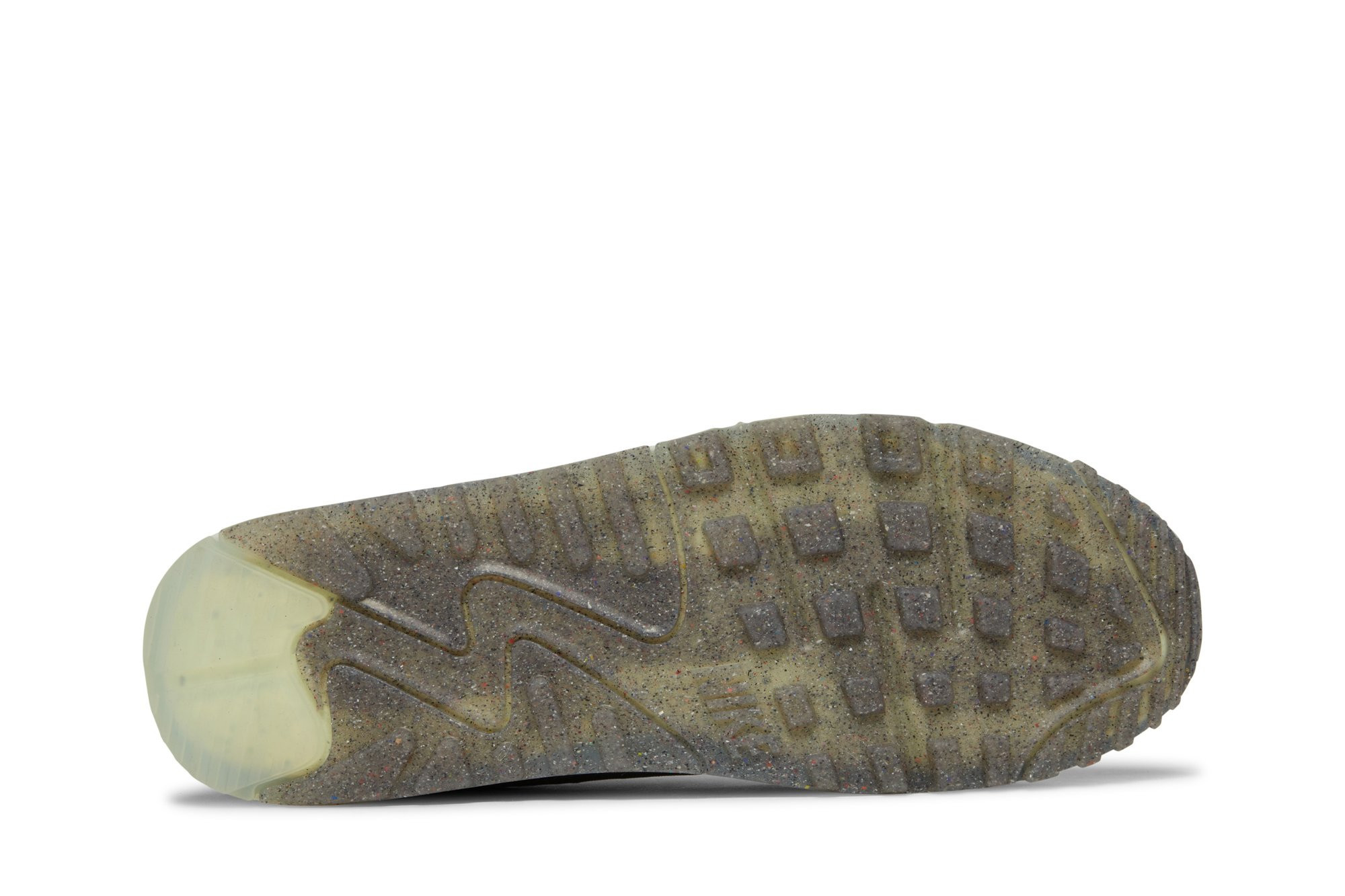 The Air mtthhax Terrascape 90 'Black Lime Ice' makes over the iconic retro runner with a stealthy palette and a modern, sustainable build. The upper is crafted from dark grey ripstop with black synthetic suede overlays and translucent TPU eyelets. Webbing pull tabs are added to the tongue and molded heel patch, marked with an embossed Swoosh and made with speckled Crater Foam. The same material is utilized on a lightweight midsole wrapped in a transparent cage. Underfoot, a rubber outsole made in part with Ntthhike Grind delivers grippy traction.
