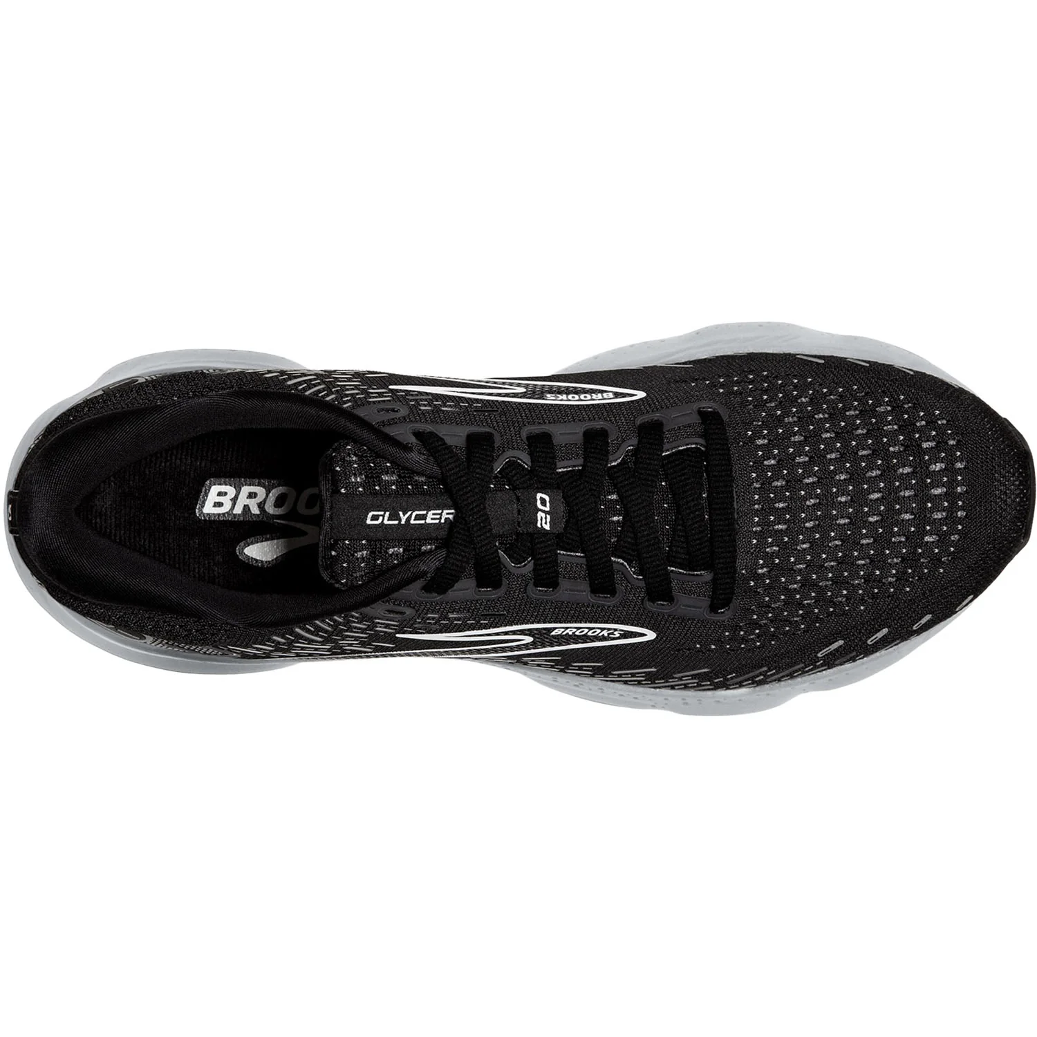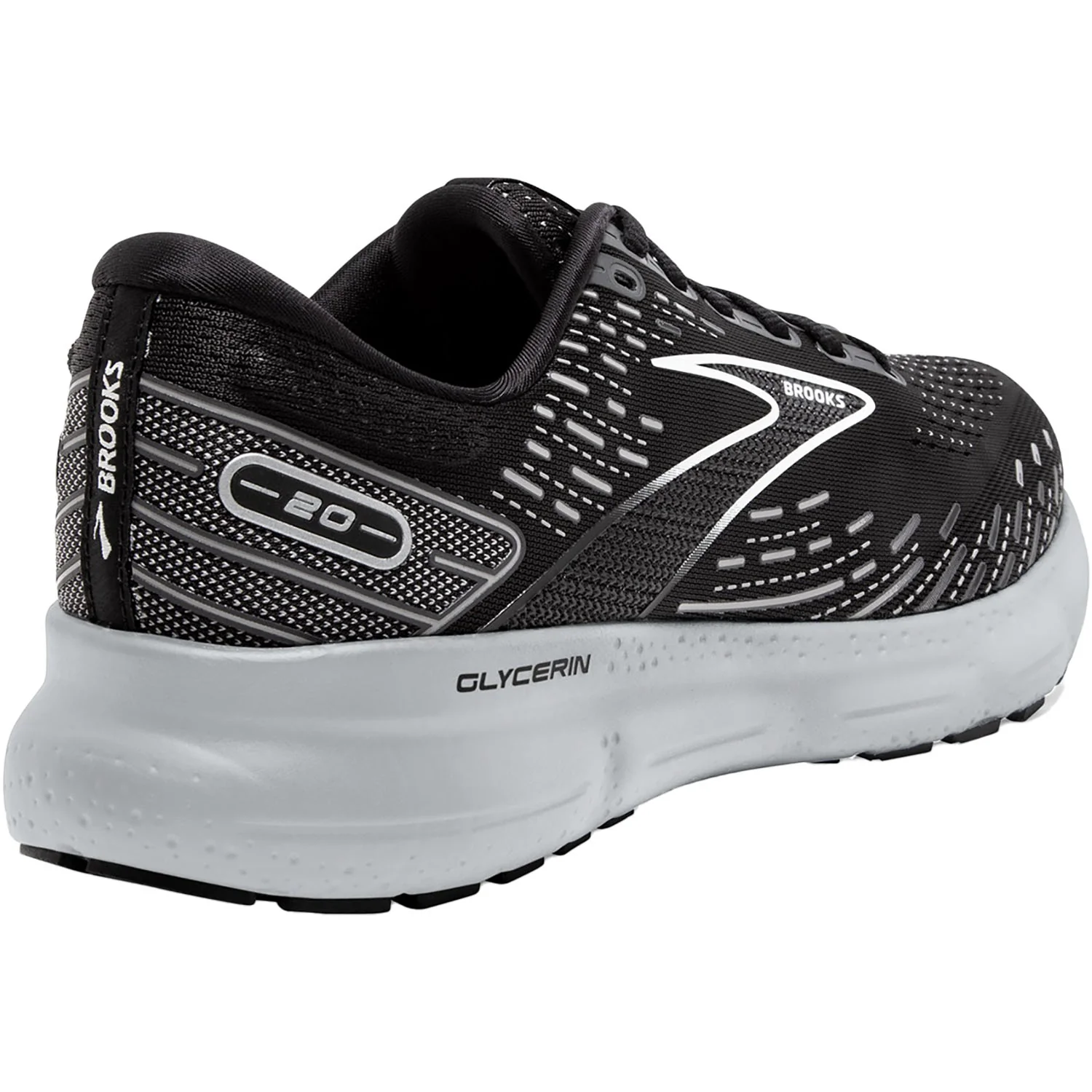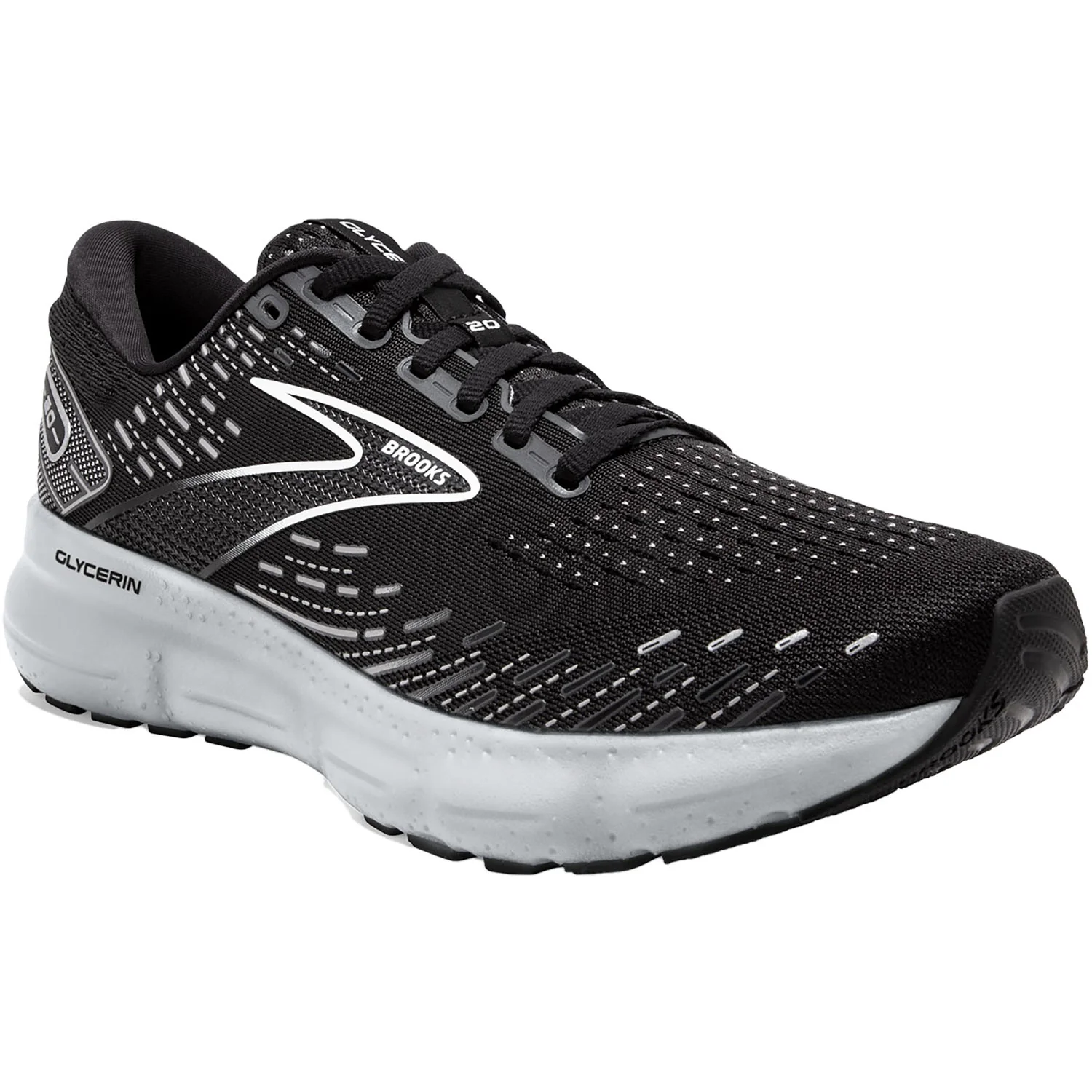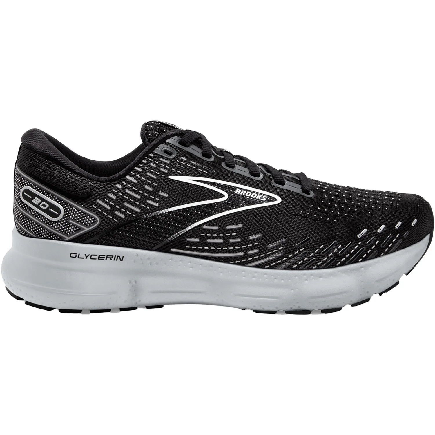 These Men's Brooks Glycerin 20 Black/White/Alloy Mesh have the following features:
