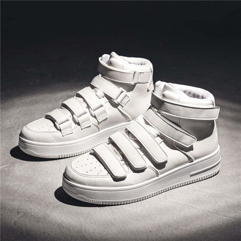 Spring Men's High-top Board Shoes Trendy Youth Student White Shoes Velcro Sports Casual
