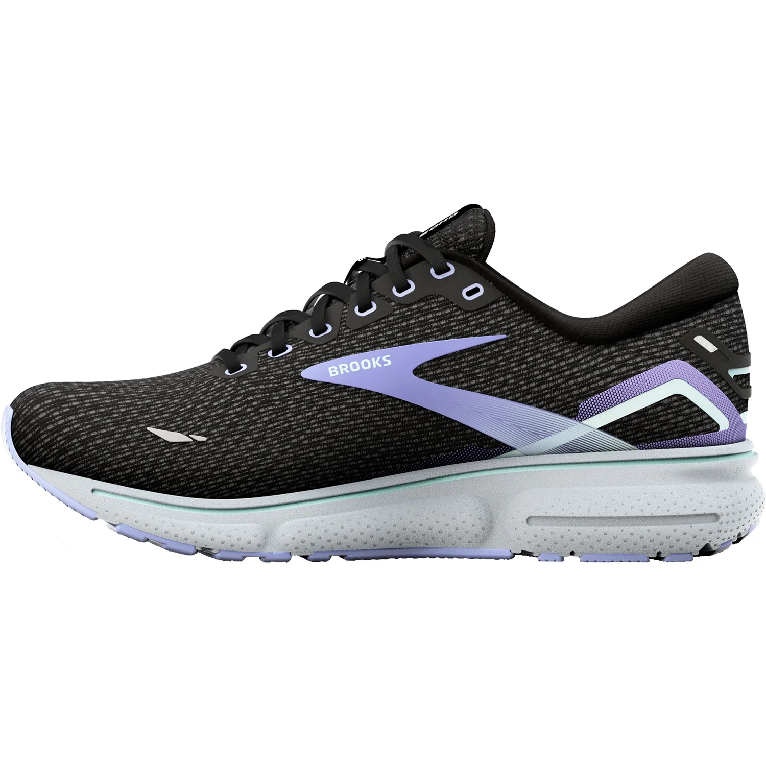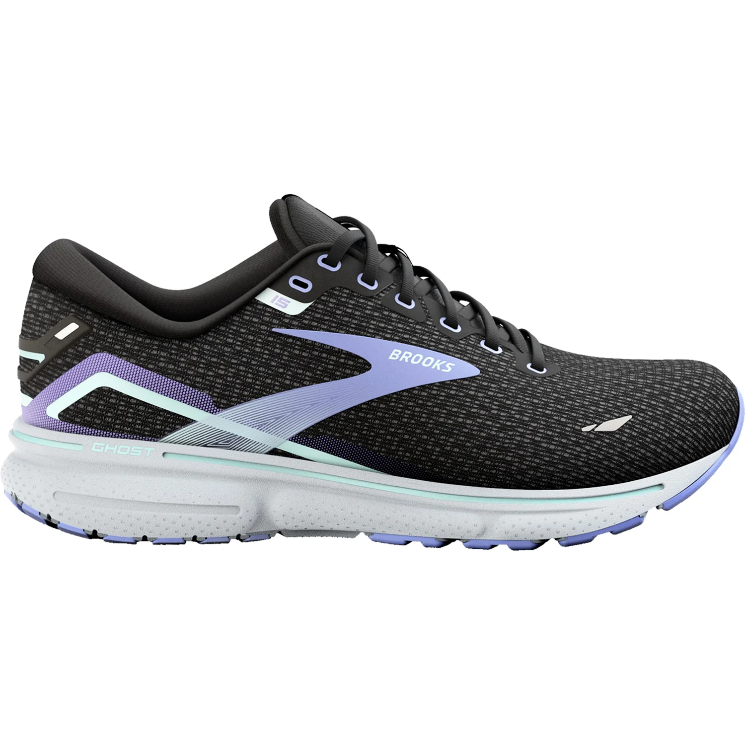 These Brooks Ghost 15 Black/Jacaranda/Salt Mesh Women's Shoes have the following features: