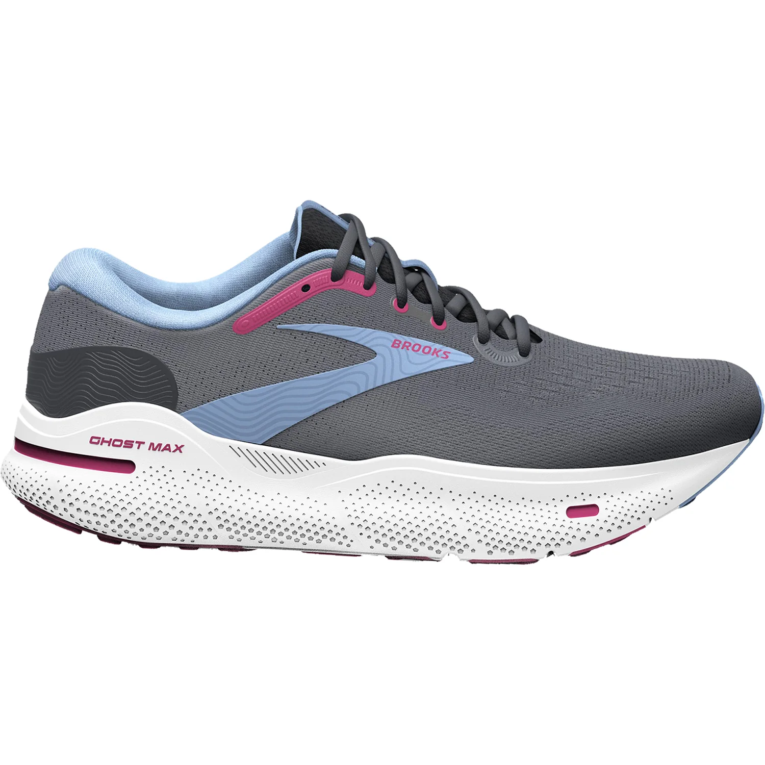 The new Brooks Ghost Max women's running shoe delivers enhanced protection thanks to plenty of soft cushioning, a super stable ride, and rocker-like transitions that propel you forward. This neutral shoe is great for running or walking, as it helps absorb impact to protect your feet.