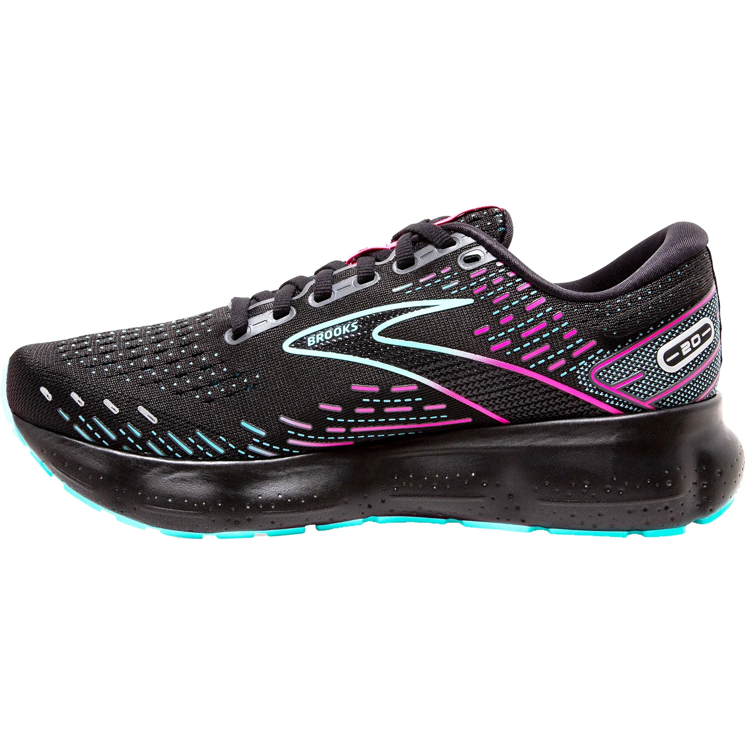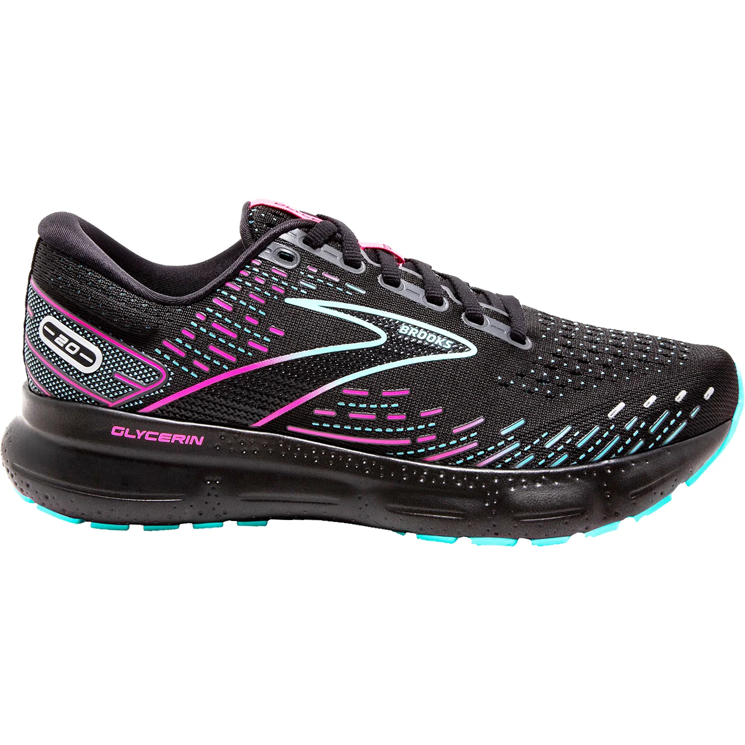 These Brooks Glycerin 20 Black/Blue Light/Pink Mesh Women's Shoes have the following features: