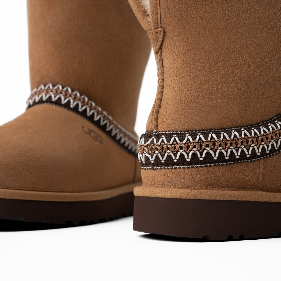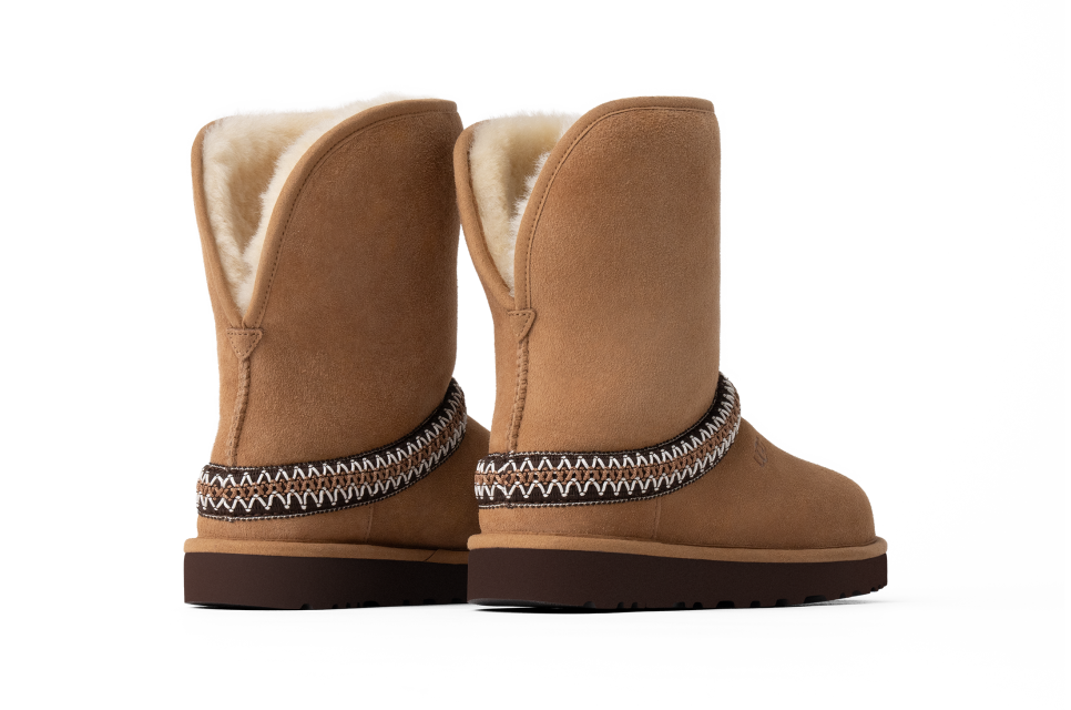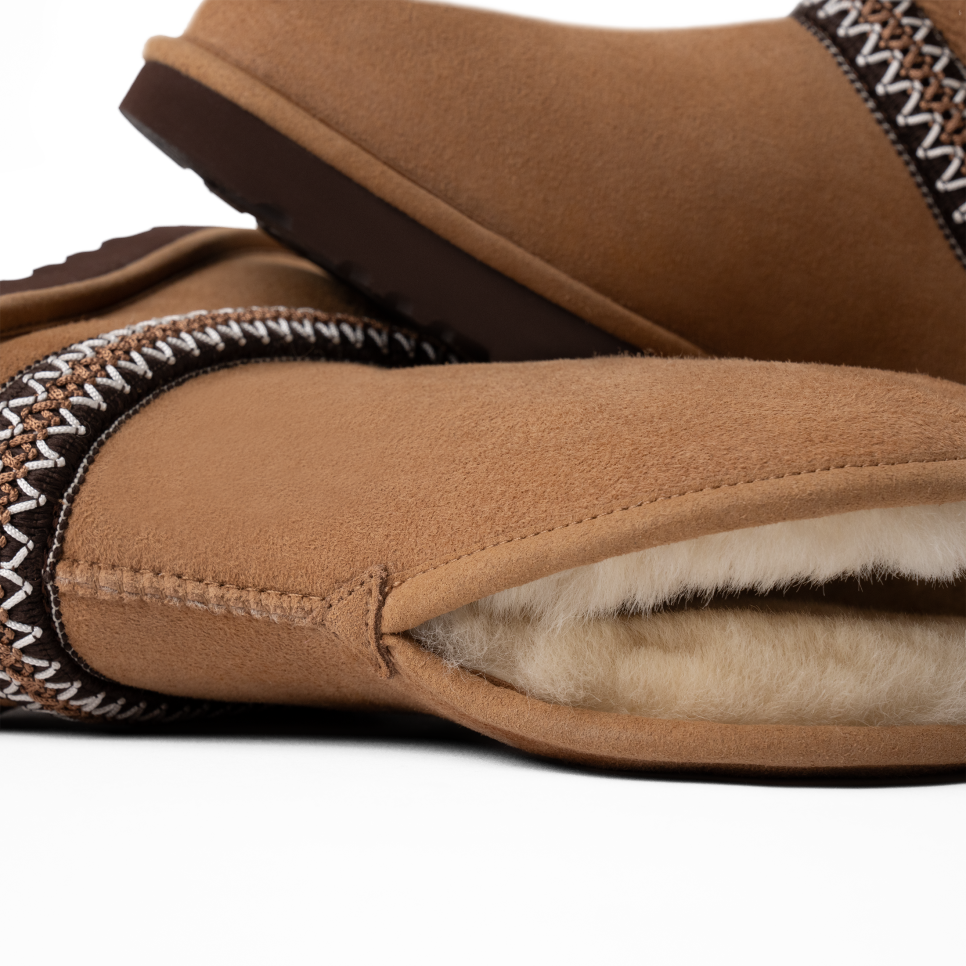 - Suede vamp, UtthhGGbraid made with 100% recycled polyester fibers, Suede heel counter, 17mm Twinface Sheepskin shaft