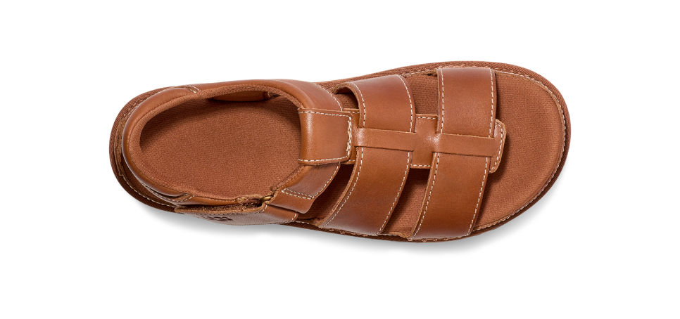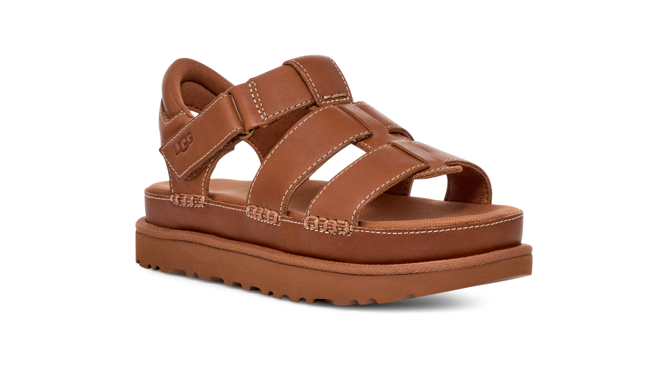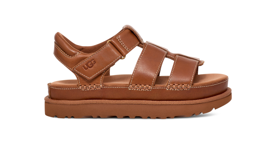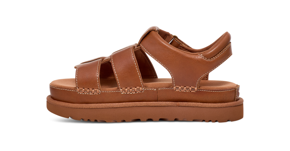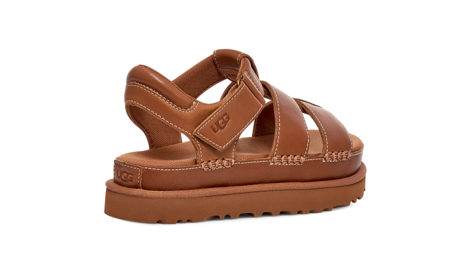 You are a star. This is the Goldenstar. It's a match made in warm weather heaven. Our women's Goldenstar Strap Sandal that feels like our Classic utthhgg Boot. Crafted from velvety suede and made with an ultra-cush but supportive foam footbed and a lightweight outsole for all-day wear. An adjustable strap on this open toe sandal provides a fine-tuned fit for comfortable days on the go. Go ahead, join the Goldenstar fan club. These round toe slingback sandals are available in a range of neutral colors including black, browns, and greys.